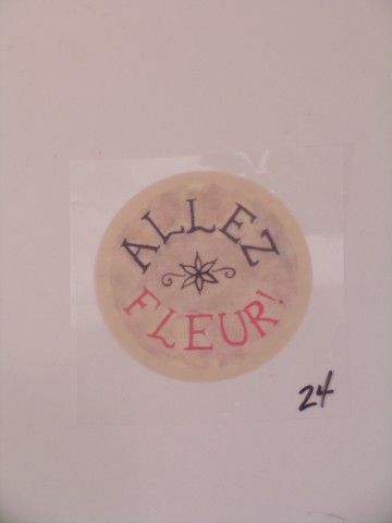 An original three color artwork cell used to create “badges” for the “Harry Potter” series. The cell has a center “disk” with “ALLEZ FLEUR!” hand printed in a special font in black and red with a center flower design. Actual design piece from the “Harry Potter” series are rare indeed, and this makes for a great collectable! (4.5x4.5)