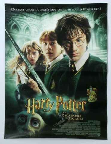 A poster for the French release of "Harry Potter et la chambre des secrets" (Harry Potter and the Chamber of Secrets). The poster is approx. 16"x21" with a fold crease in the center.