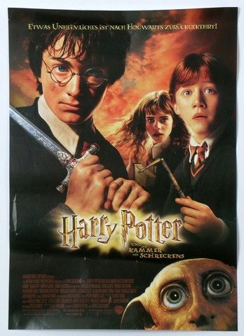 A Poster for the German release of "Harry Potter and the Chamber of Secrets ("Harry Potter Und die Kammer des schreckens"). The full color poster is approx. - 11.75"x16.5" and has a slight crease.