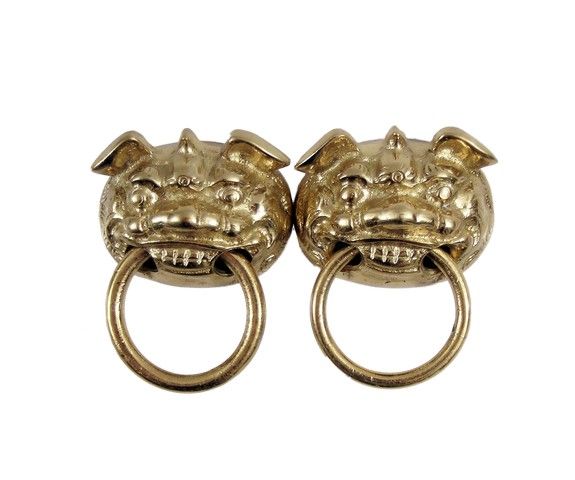 Harry Potter Chamber Of Secrets Pig Handle Props - A delightful set of faux-brass metal pig face handles used as background sets pieces in "Harry Potter and the Chamber of Secrets" (2001). (Approx. 2 1/2" x 3 1/2" each).