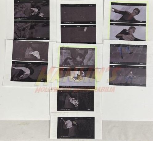 Original CG storyboard set showing Harry being attacked by a Death Eater and two showing Ron Weasley, used in the Harry Potter fantasy film series based on the Harry Potter novels by author J. K. Rowling.