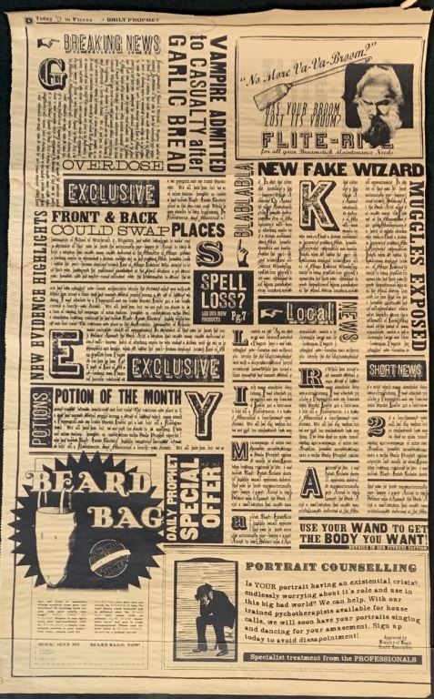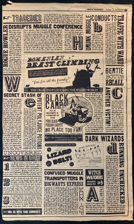 Harry Potter Franchise - "Daily Prophet" Prop Newspaper Page.