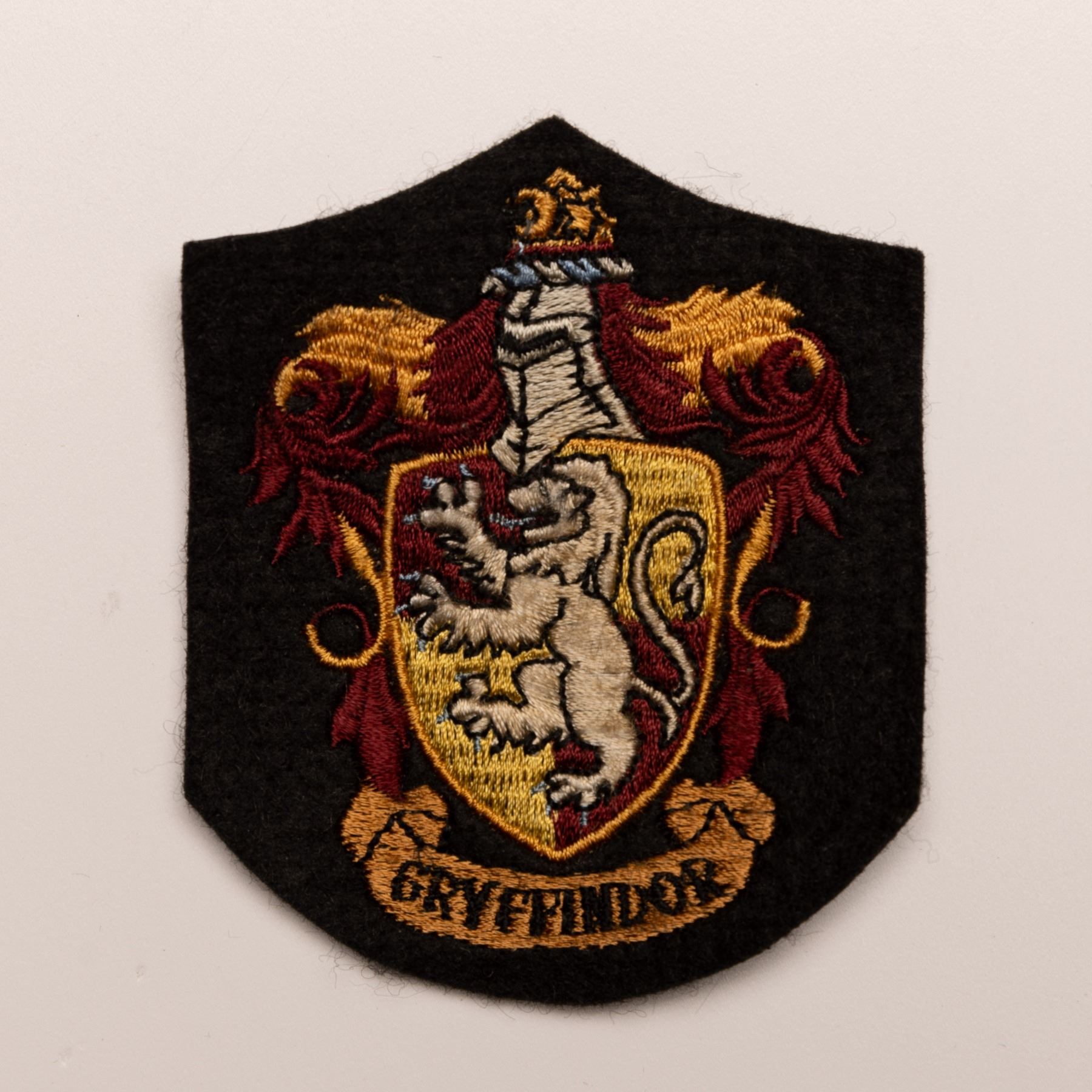This set features four patches, each representing the different houses of Hogwarts. Included is a Gryffindor, Slytherin, Ravenclaw, and Hufflepuff patch, each of which is embroidered in full color. Each patch was attached to house robes used in the series, which were later removed after filming. This set shows minor wear from use in the films but remains in excellent, production-used condition. This lot is accompanied by a Certificate of Authenticity from Studio Auctions.