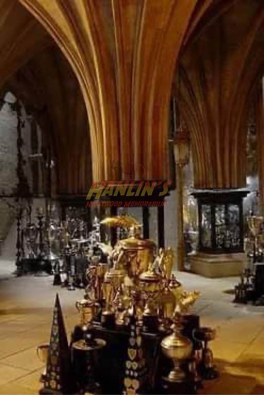 These can be seen attached to wooden plaques in the Hogwarts trophy room. Seen in multiple Potter movies including the last ones.