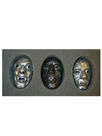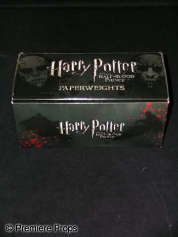 This is a promotional set of Harry Potter and the Half-Blood Prince mask paperweights. Available only through a sweepstakes entry, this set of 3 paperweights depict three different masks of terror and are in new in box condition. A very limited item. (Paperweights each measure approx. 3"x2")