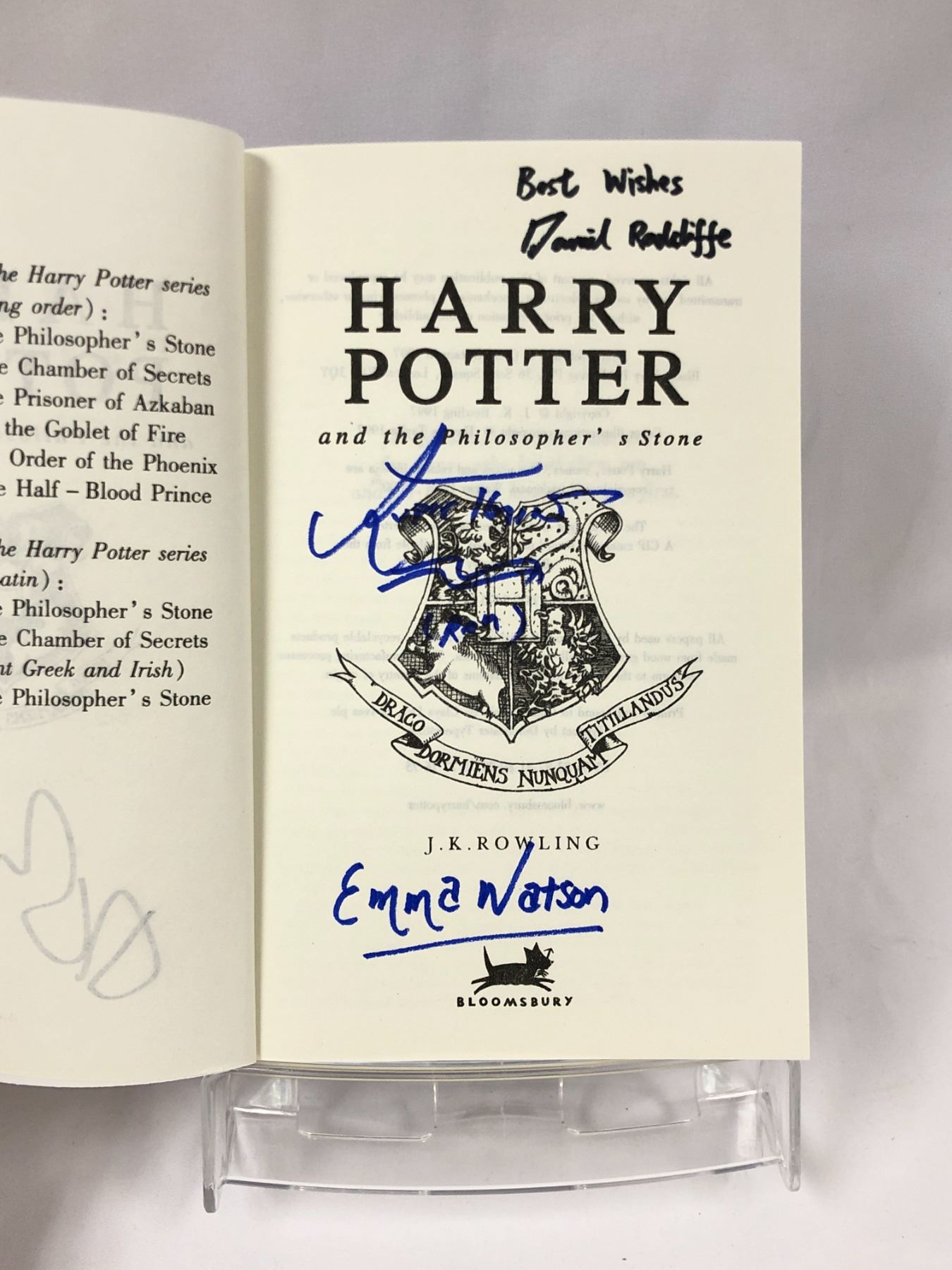 JK Rowling, Daniel Radcliffe, Emma Watson, Rupert Grint (child period autograph)