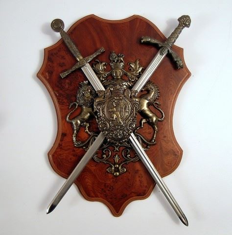 Harry Potter Philosopher's Stone - Diagon's Alley two sword crest wall decoration. (approx. 18" x 11")
