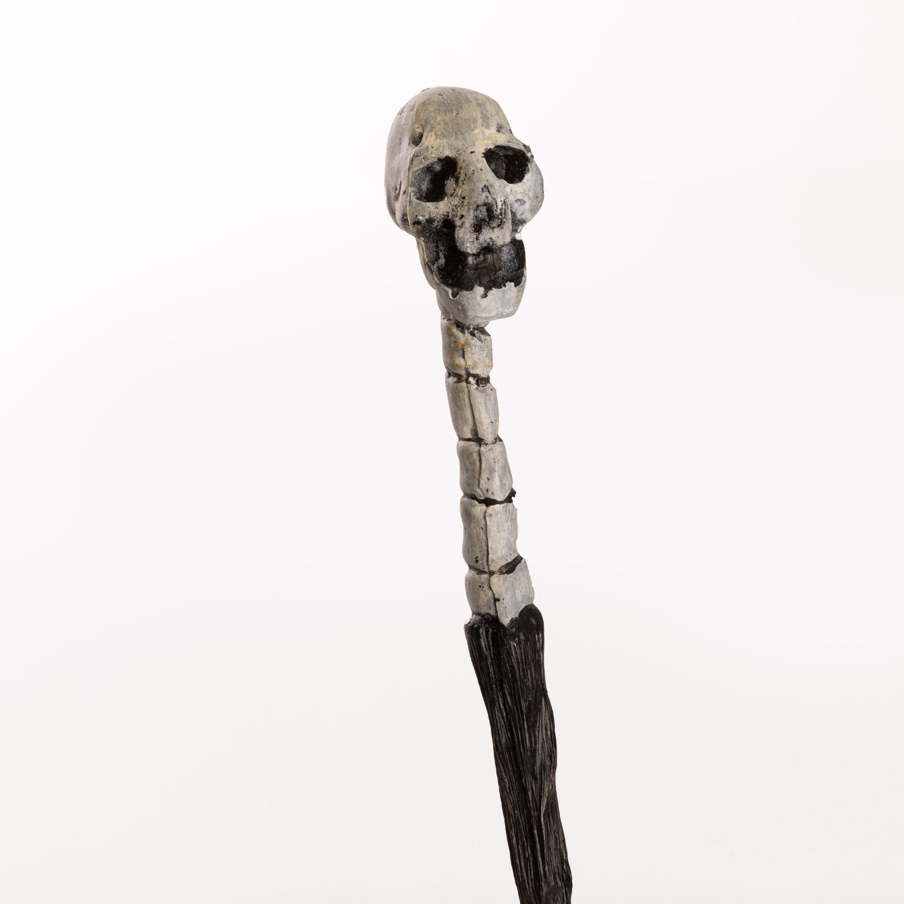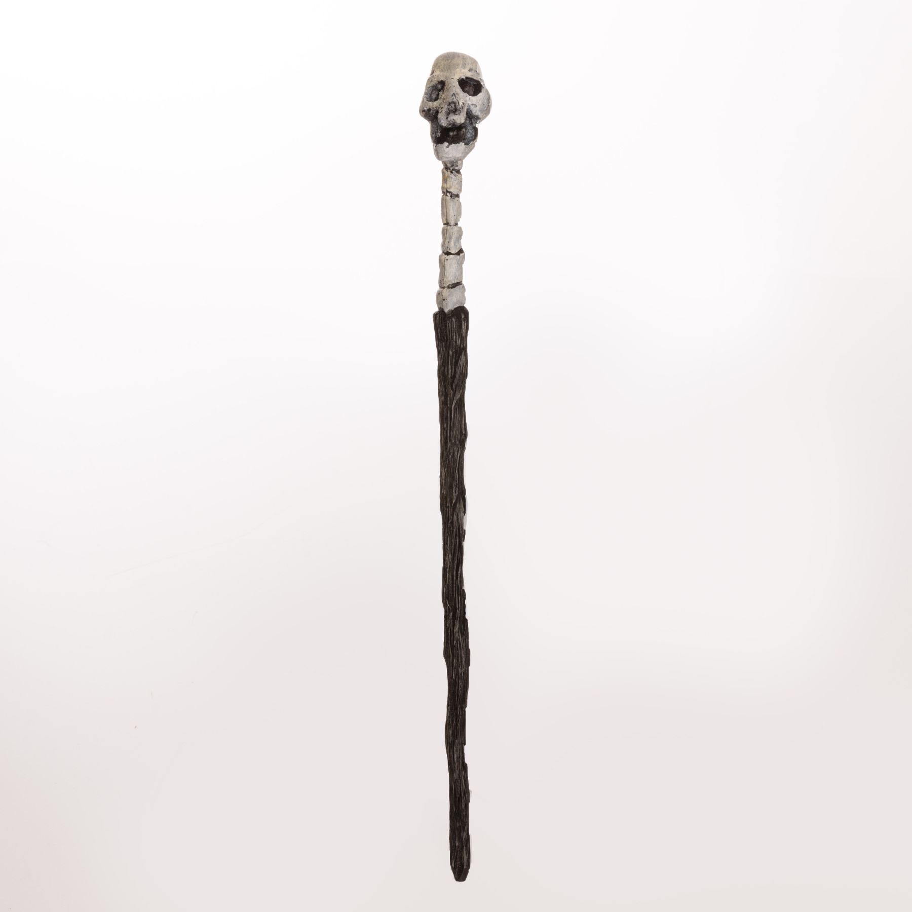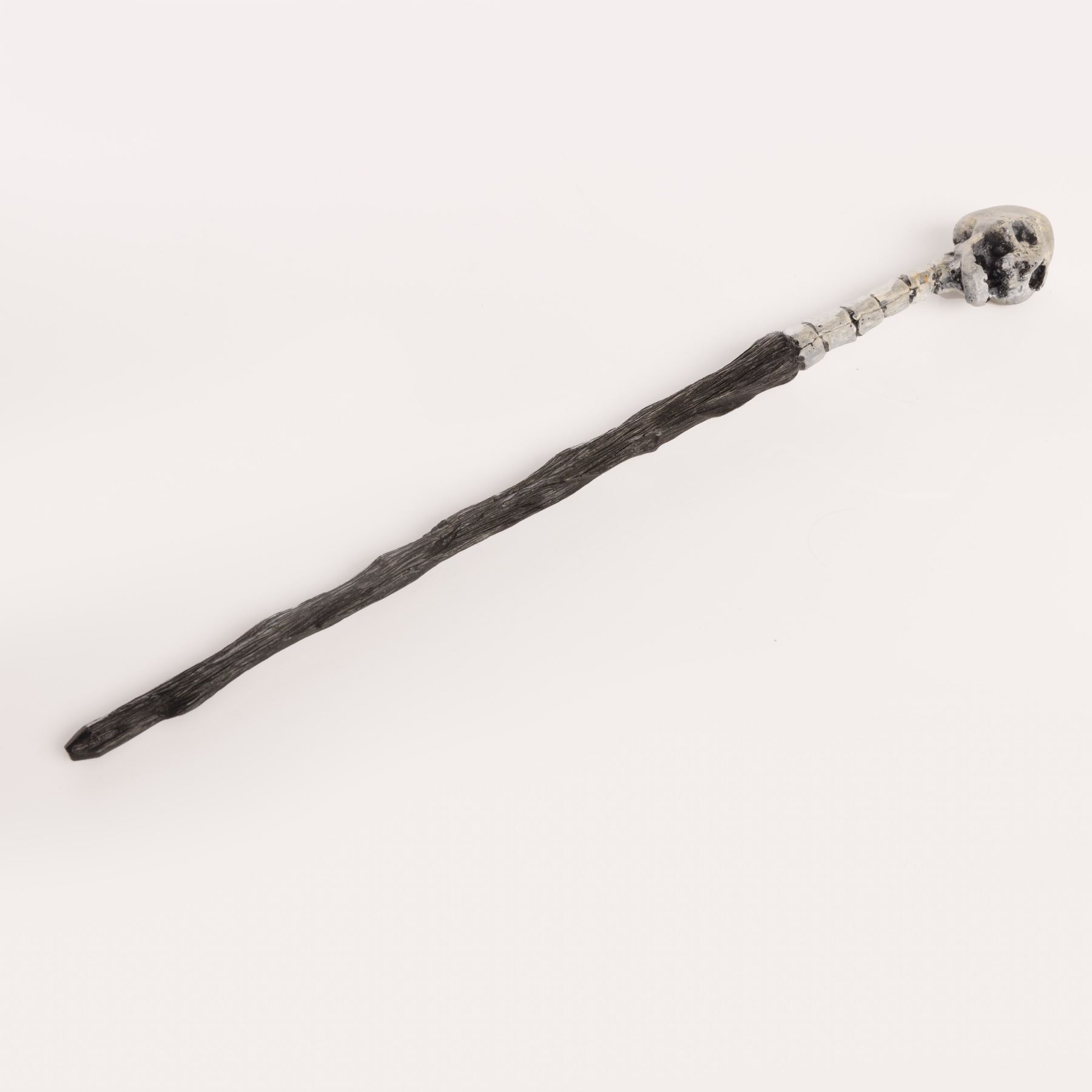 This wand was wielded by the Death Eater known as Alecto, who served as the deputy head minister of Hogwarts. Made of resin, this wand features an intricate casting of a skull at the end with vertebra sections, and a long black shaft. This item measures 13.5” long and remains in excellent, production-used condition. This lot is accompanied by a Certificate of Authenticity from Studio Auctions.