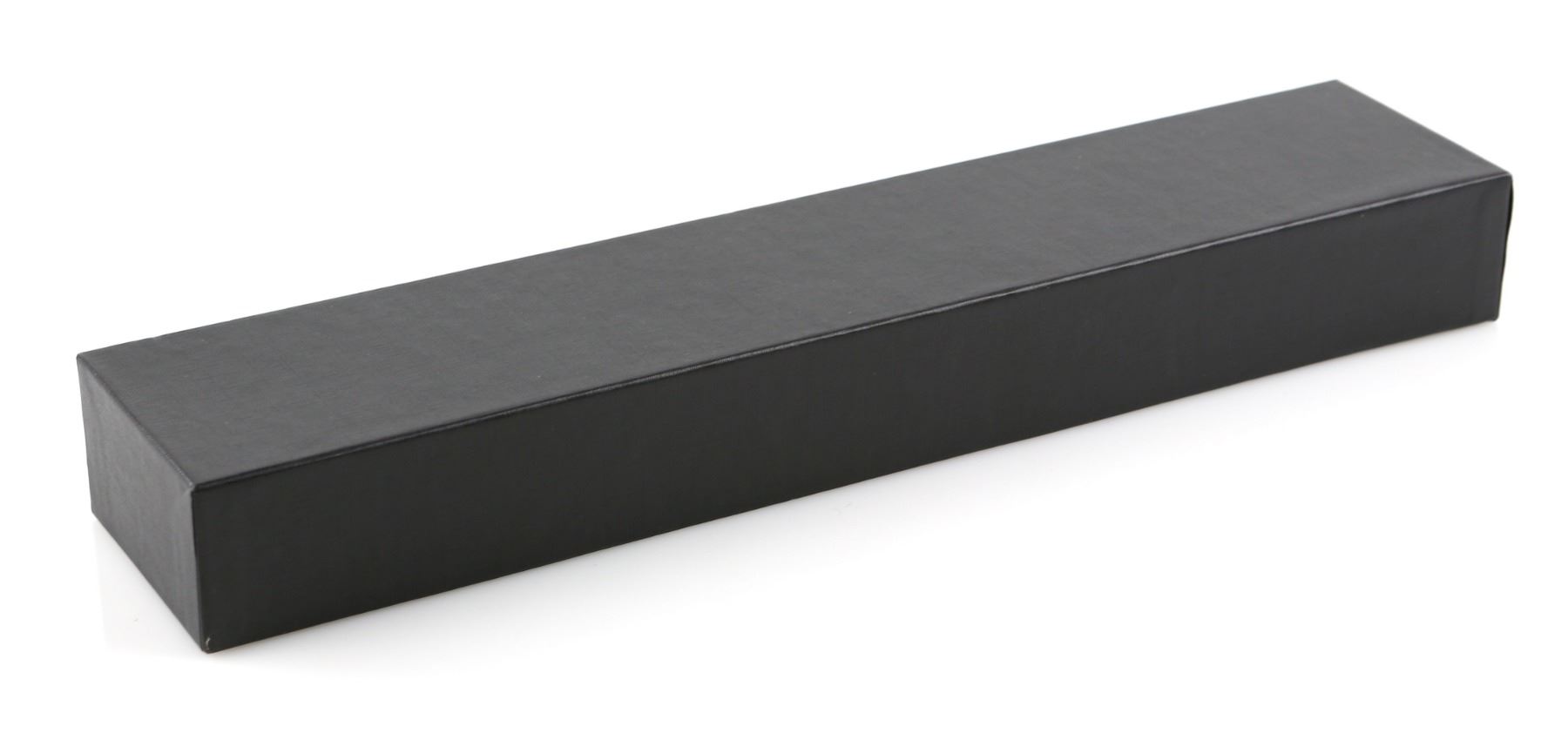 Harry Potter & The Philosopher’s Stone (2001) - A background wand box from Ollivanders Wand Shop used in the production of the Movie. This is one of a number of wand boxes created by the production to dress Ollivanders wand shop. Constructed from cardboard with black cover, this non opening, non labelled box would have been used for set decoration, 39 x 4.5 x 8 cm.Provenance: The Box was given to a crew member at Leavesden as a gift for working on the production.