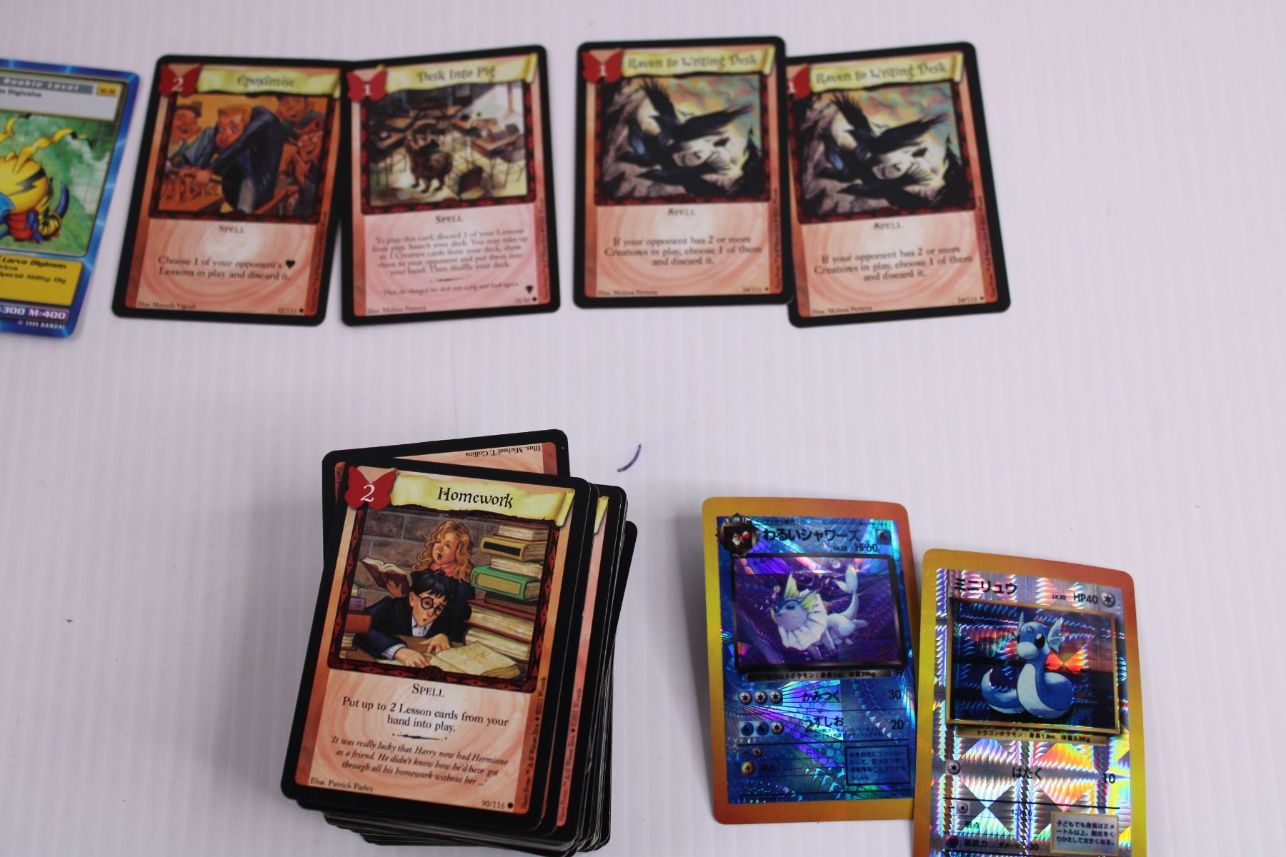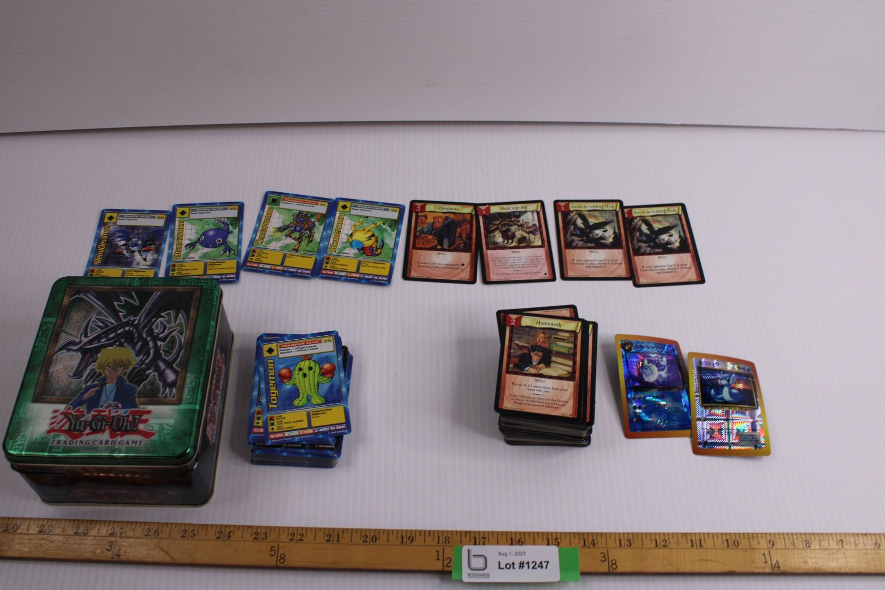 Harry Potter Trading Cards + Digimon Cards + (2) Pokémon Cards + Yu-GI-Oh Tin