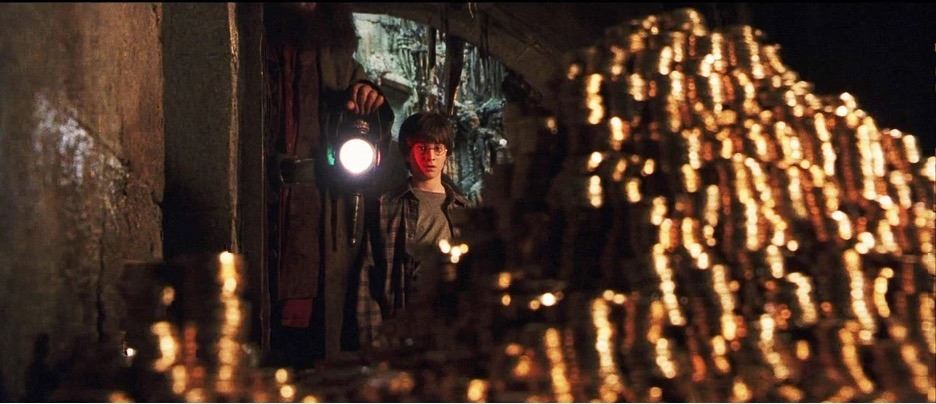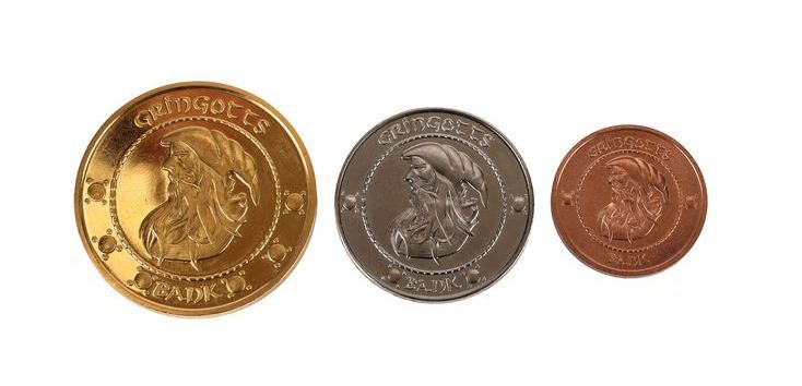 Set of three Gringotts Bank coins used in the production of the 2001 Christopher Columbus fantasy film Harry Potter and the Sorcerer’s Stone. Adaptation of the first of J.K. Rowling’s popular children’s novels about Harry Potter, a boy who learns on his eleventh birthday that he is the orphaned son of two powerful wizards and possesses unique magical powers of his own. He is summoned from his life as an unwanted child to become a student at Hogwarts, an English boarding school for wizards. There, he meets several friends who become his closest allies and help him discover the truth about his parents’ mysterious deaths.