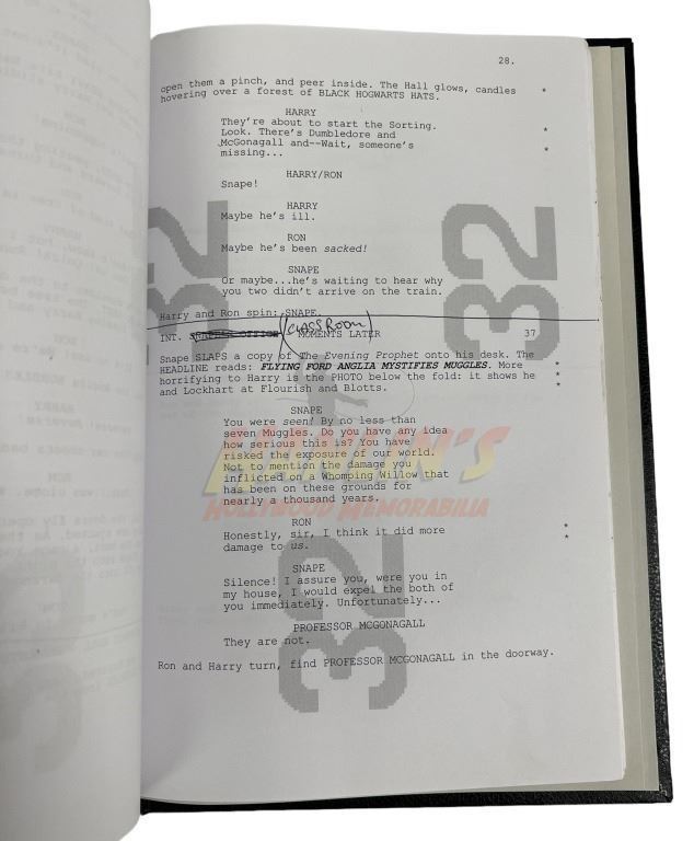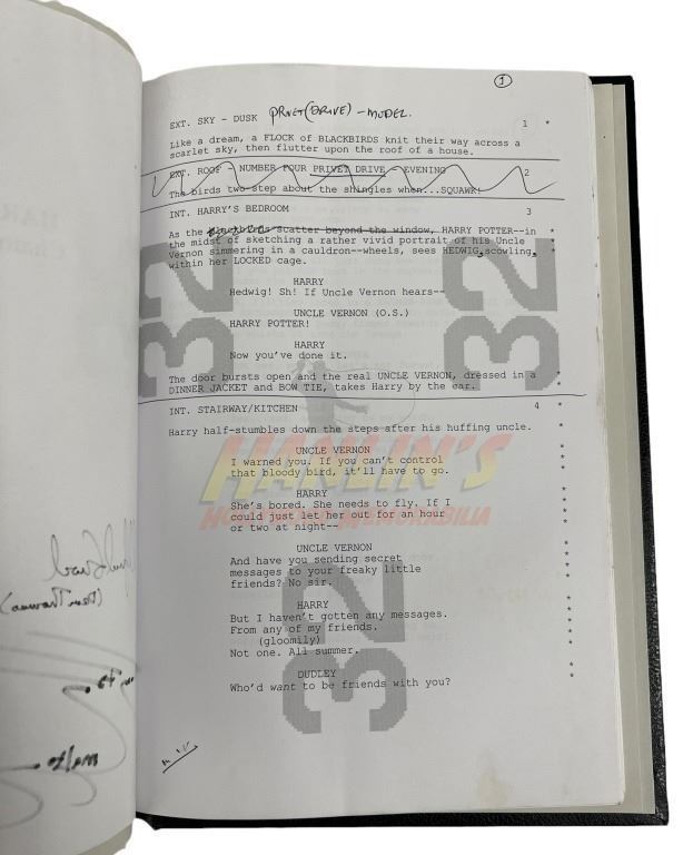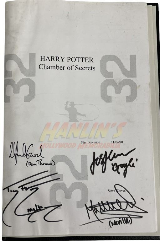 Original production used bound annotated script used in the fantasy film 'Harry Potter and the Chamber of Secrets' (2002), directed by Chris Columbus, where an ancient prophecy seems to be coming true when a mysterious presence begins stalking the corridors of a school of magic and leaving its victims paralyzed.
