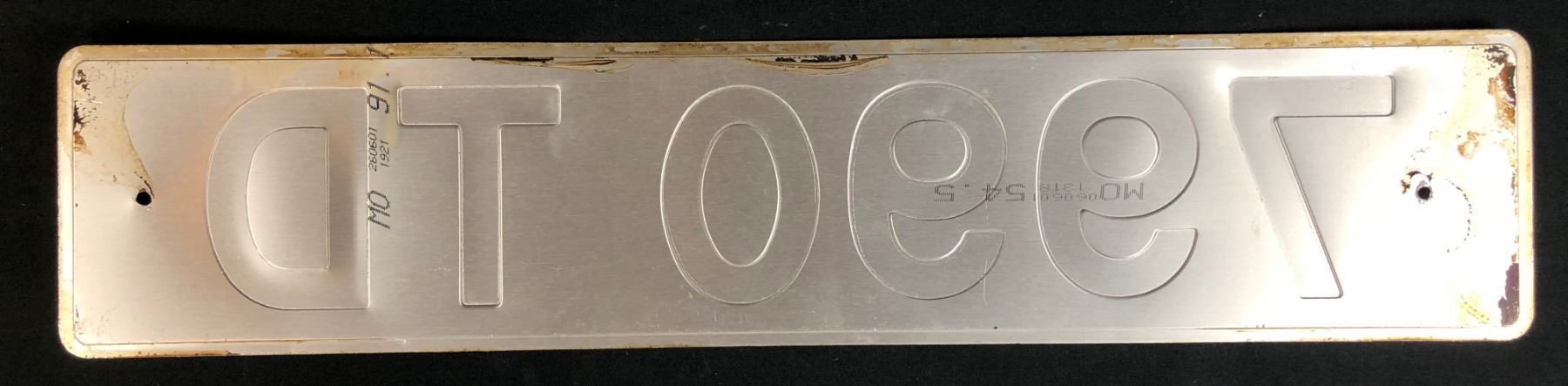 Original license plate from the Weasley flying Anglia car from the fantasy film Harry Potter and the Chamber of Secrets (2002), directed by Chris Columbus, where an ancient prophecy seems to be coming true when a mysterious presence begins stalking the corridors of a school of magic and leaving its victims paralyzed.