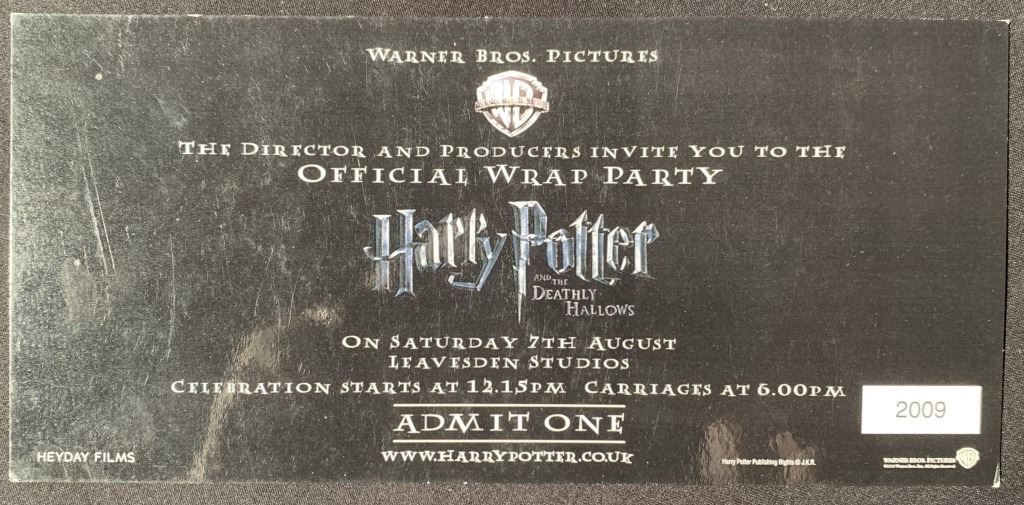 Harry Potter and the Deathly Hallows: Part 1 & 2 (2010-2011) - Official Production Wrap Party Invite