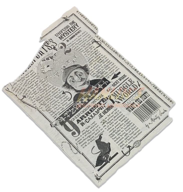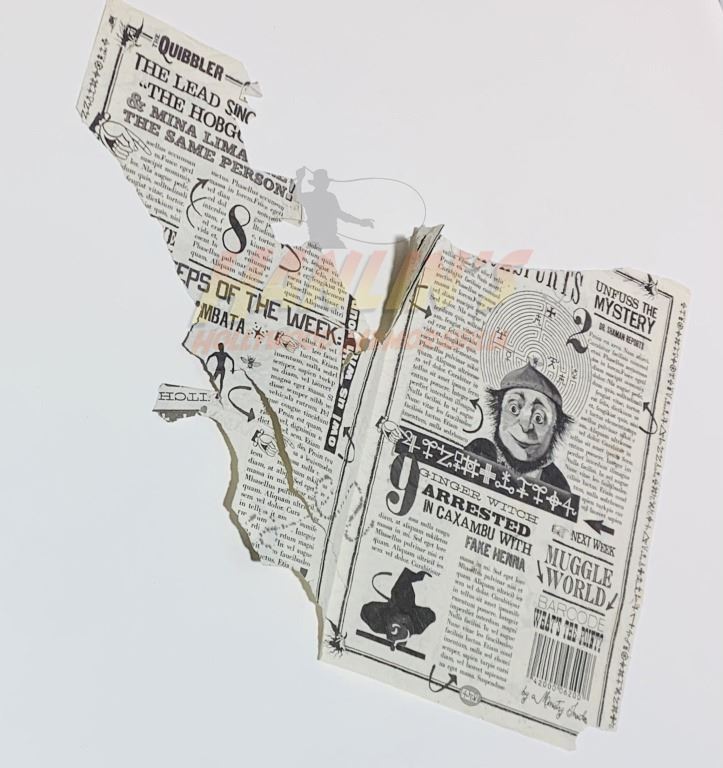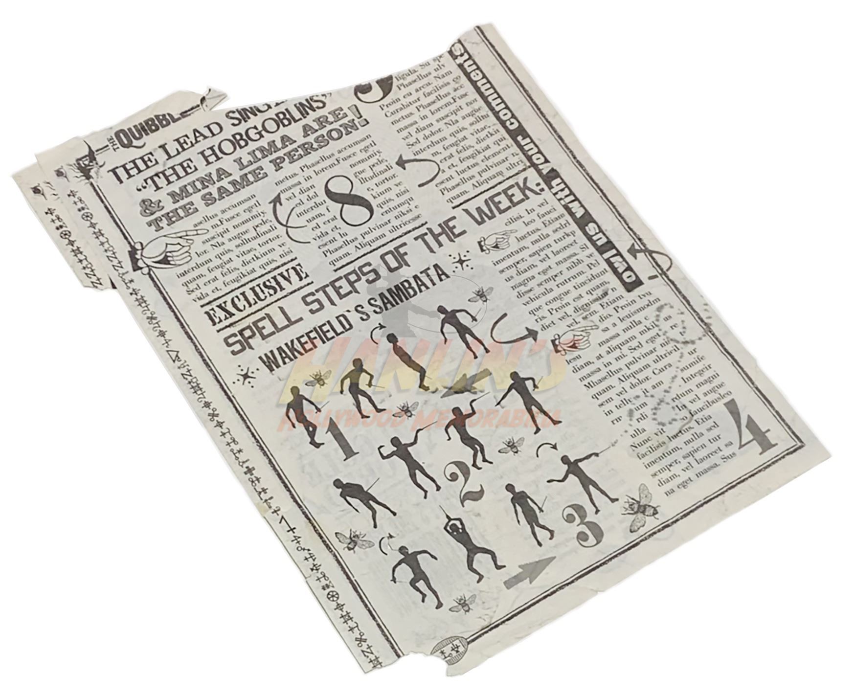 Original burnt Quibblers magazine page from the Harry Potter fantasy film 'Harry Potter and the Deathly Hallows: Part 1' (2010) based on the Harry Potter novels by author J. K. Rowling.