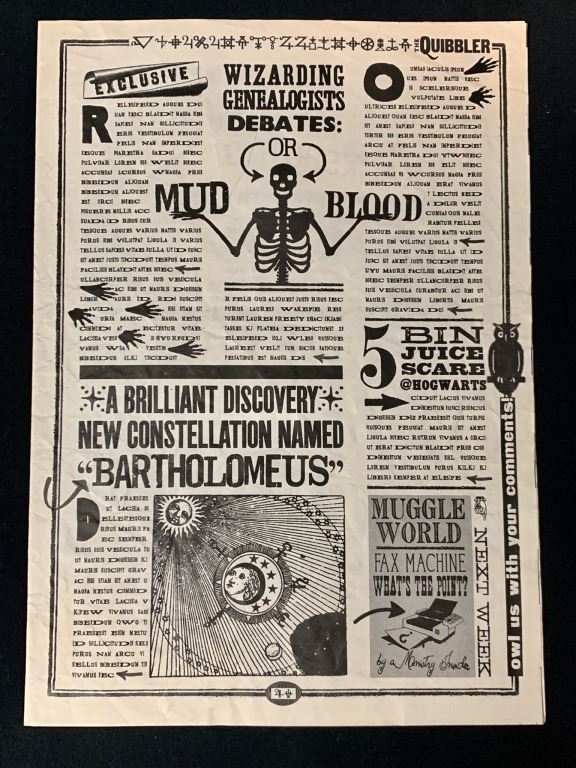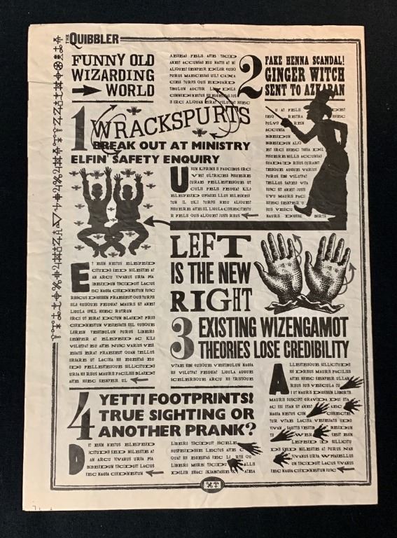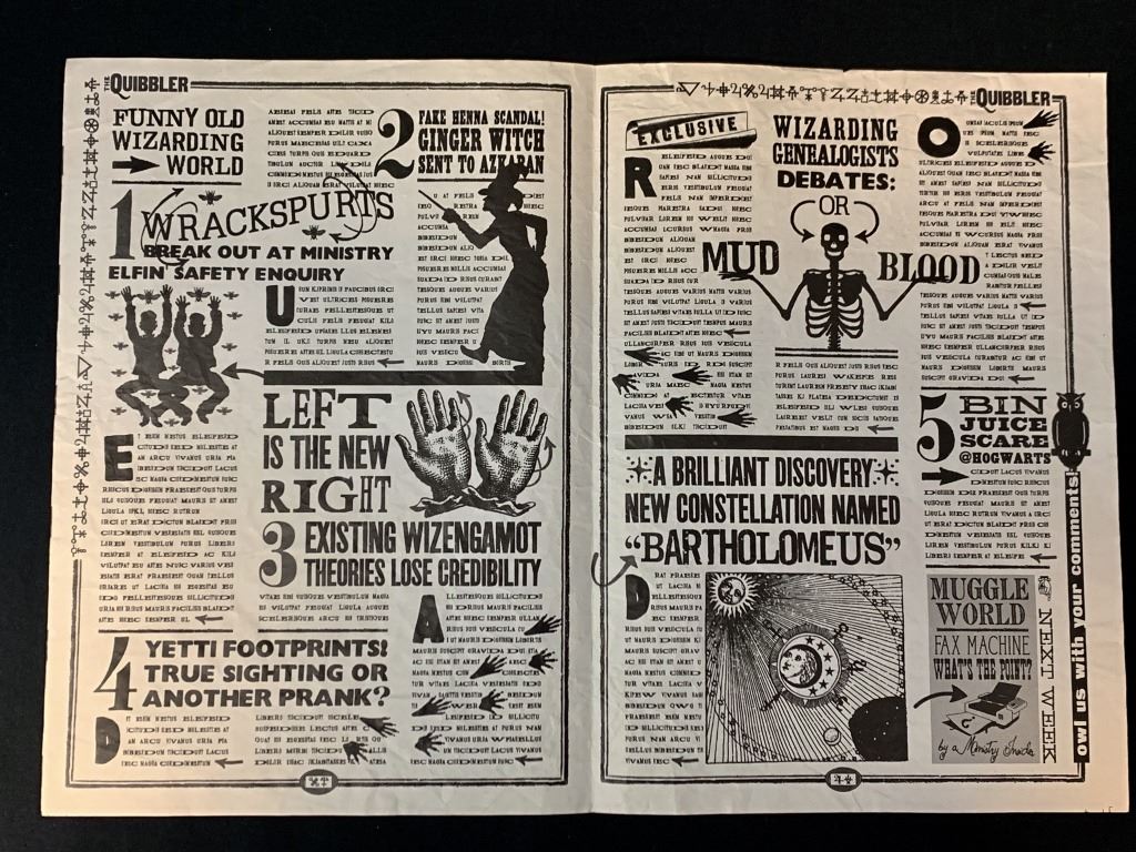 Original Quibblers magazine center spread from the Harry Potter fantasy film Harry Potter and the Deathly Hallows: Part 1 (2010) based on the Harry Potter novels by author J. K. Rowling.