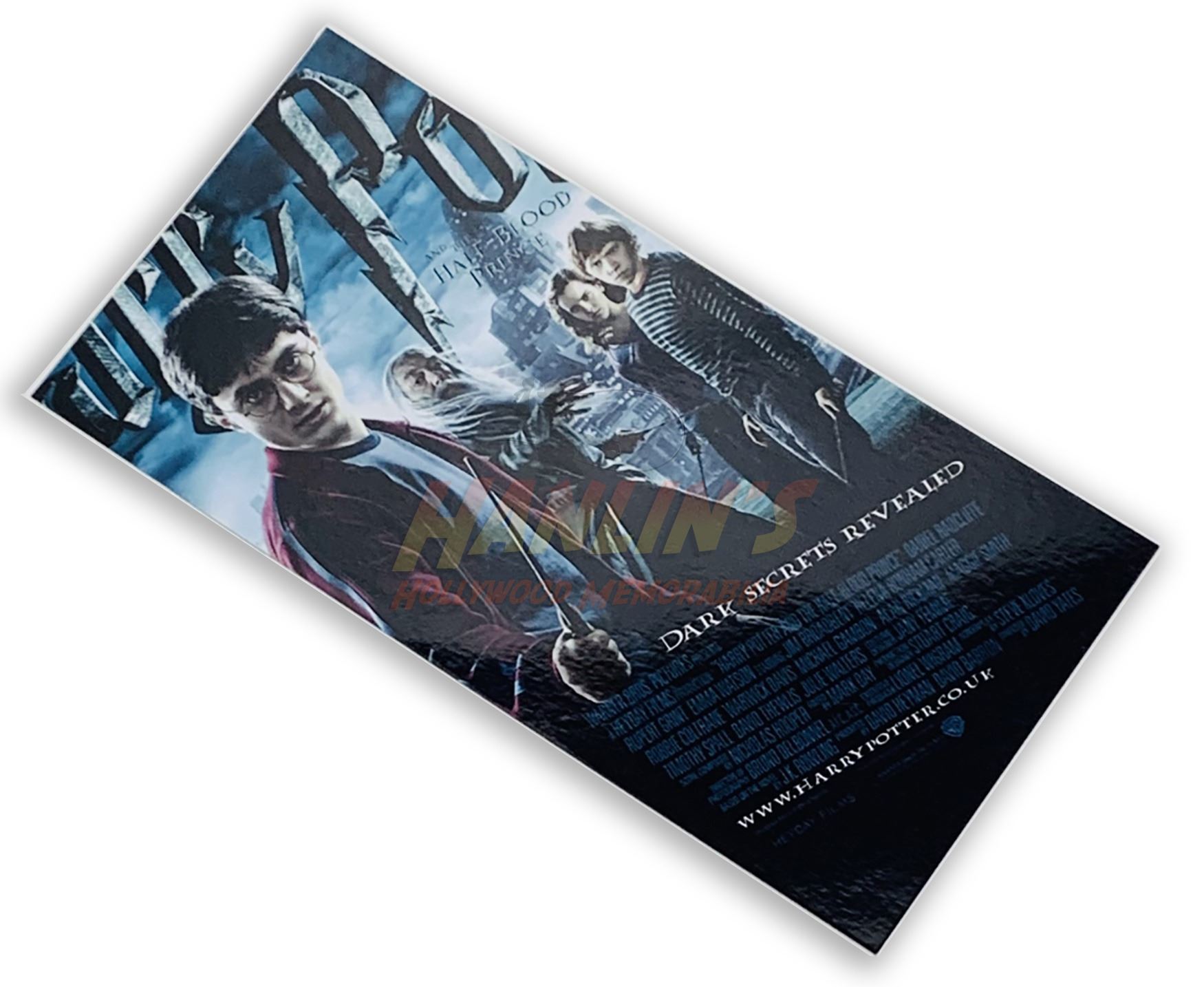 Original screening ticket given to the press for the fantasy film 'Harry Potter and the Half-Blood Prince' (2009), directed by David Yates. The story follows Harry Potter's sixth year at Hogwarts as he receives a mysterious textbook, falls in love, and attempts to retrieve a memory that holds the key to Lord Voldemort's downfall.