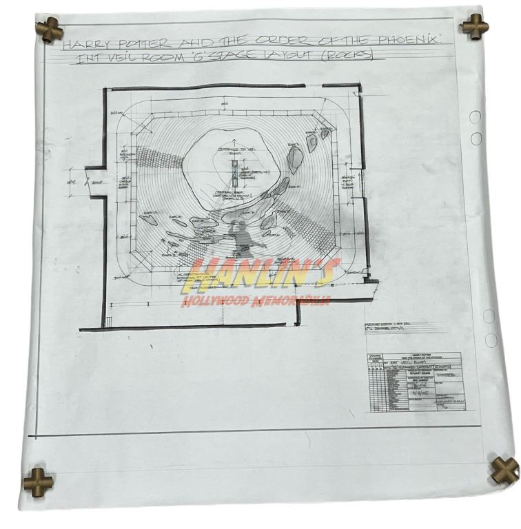 Production made 'Veil Room' blueprint used in the production of the fantasy film 'Harry Potter and the Order of the Phoenix' (2007). The story follows Harry Potter's fifth year at Hogwarts as the Ministry of Magic is in denial of Lord Voldemort's return.