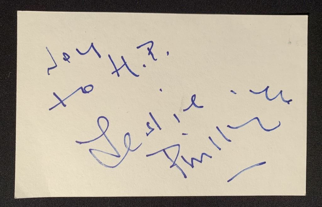 Original card signed by Leslie Phillips who was the Voice of 'The Sorting Hat' in the fantasy film 'Harry Potter and the Sorcerer's Stone' (2001), directed by Chris Columbus, where an orphaned boy enrolls in a school of wizardry, where he learns the truth about himself, his family and the terrible evil that haunts the magical world.