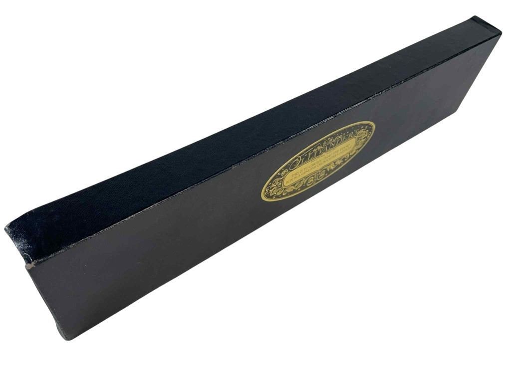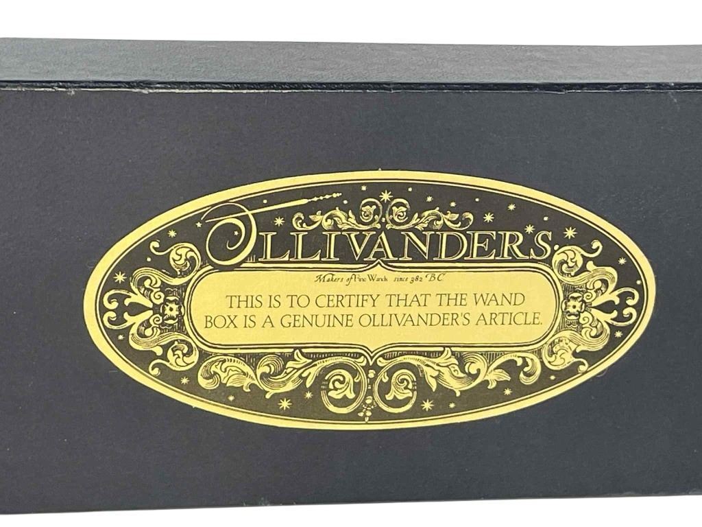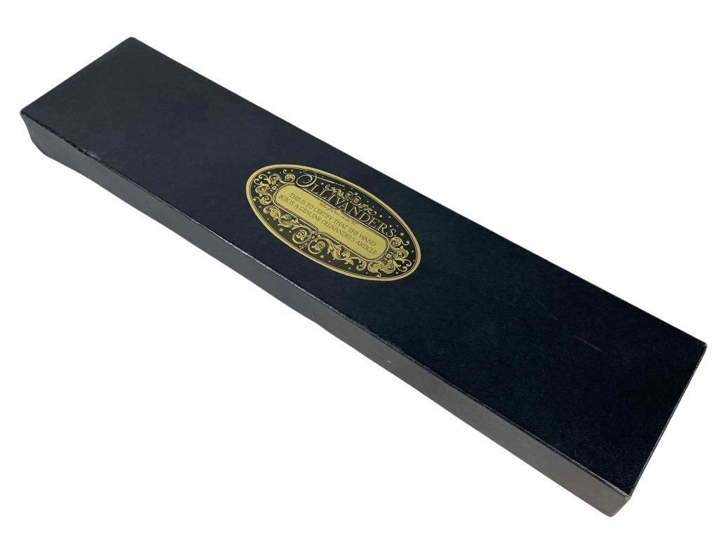 Original wand box from Ollivanders used in the fantasy film 'Harry Potter and the Sorcerer's Stone' (2001), directed by Chris Columbus, where an orphaned boy enrolls in a school of wizardry, where he learns the truth about himself, his family and the terrible evil that haunts the magical world.