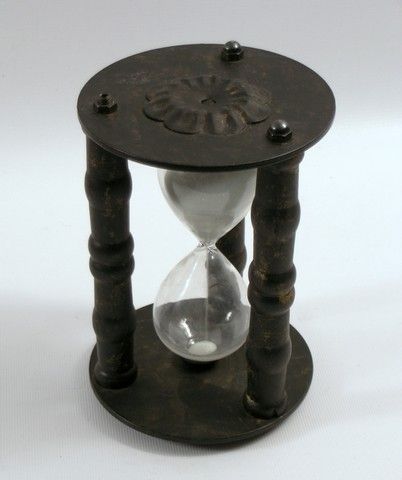Harry Potter and the Sorcerer's Stone Hour Glass Prop - "Harry Potter and the Sorcerer's Stone" began the seven additional features to bring to film, the full masterworks of J.K. Rowling. This is an hour glass with metal and wood enclosure from the film. (Approx. 6 1/2" tall).