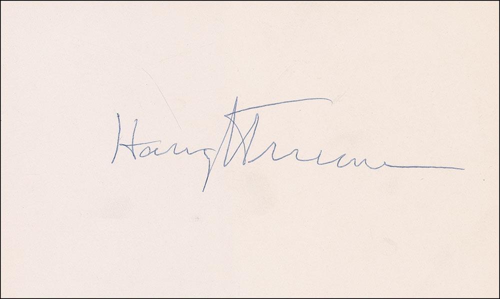 Ballpoint in-person signature, “Harry S. Truman,” on an off-white 5 x 3 card. In very fine condition.
