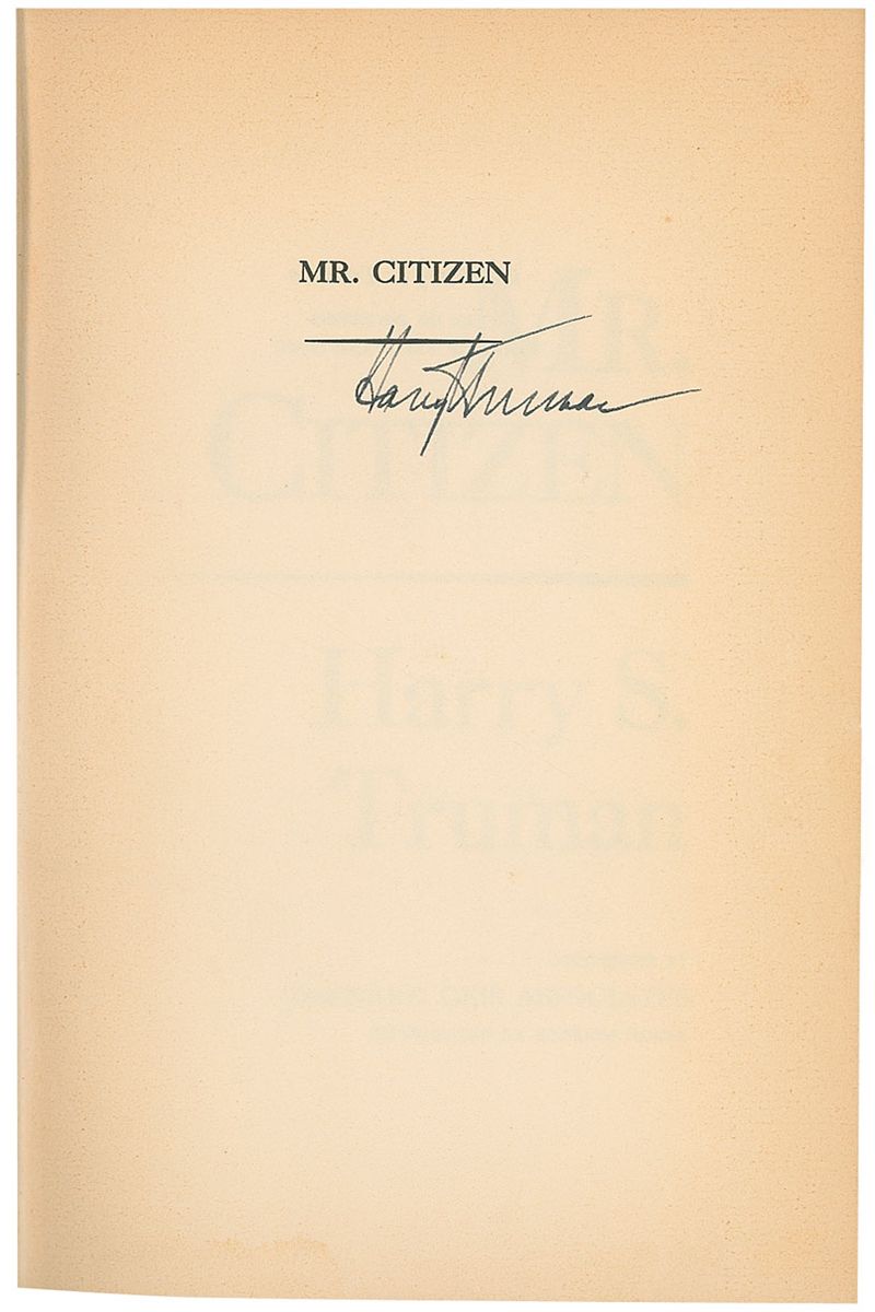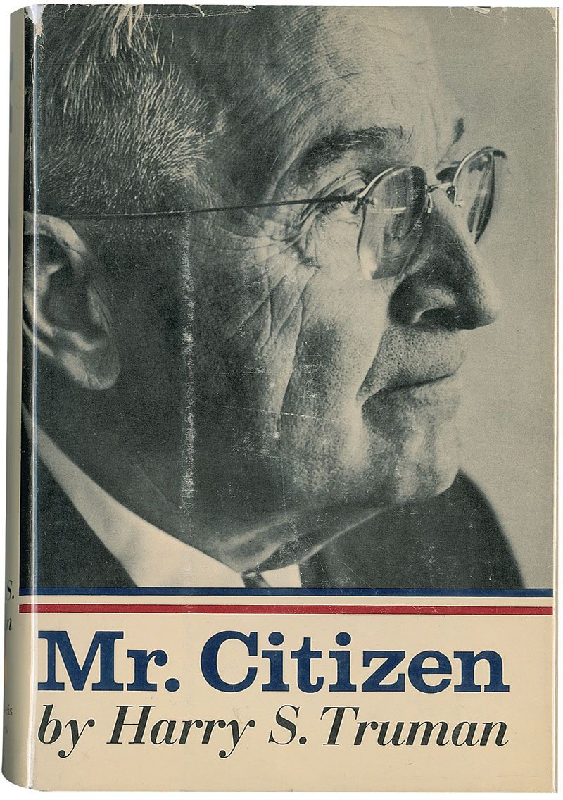 Signed book: Mr. Citizen. Later Printing. NY: Bernard Geis, 1960. Hardcover with dustjacket, 6.25 x 9.25, 315 pages. Signed on the half-title page in black ink. Mild toning to signed page, light toning and foxing to boards and spine, and scattered light wear and tear to dustjacket, otherwise fine condition.