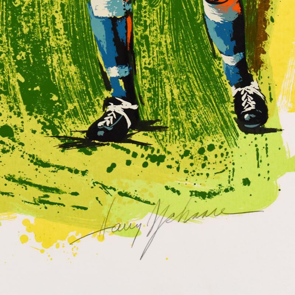 "Soccer" is a limited edition serigraph on paper by Harry Schaare (1922-2008), numbered and hand signed by the artist. Includes Letter of Authenticity. Measures approx. 28.5" x 38.5" (border), 24" x 34" (image). ** Please note: There are minor imperfections in the white border area (smudges, creases) that may be concealed when the piece is framed. ** Reference #: 252049