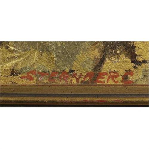 <B>HARRY STERNBERG (American, 1904-2002)</B></I><BR><I>Silver Pinnacles</B></I><BR>Oil on masonite<BR>34 x 14 inches (86.4 x 35.6 cm)<BR>Signed and titled on verso: <I>STERNBERG/ "SILVER/ PINNACLES"</B></I> <B>Condition Report:</B> Overall very good condition.<BR><BR><b>Shipping:</b> Framed - without Glass, Medium (<a target="_blank" href="http://www.heritageauctions.com/common/shipping.php">view shipping information</a>)