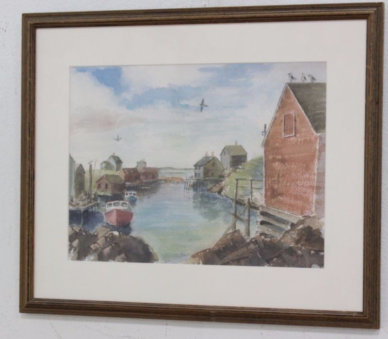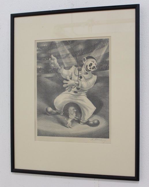 Including Harry Sternberg, Poodle and Clown, lithograph, framed, pencil signed lower right, approx. 12" H x 9 1/4" W image, 20 1/2" H x 16 1/2" W framed; and J. Haraden, Harbor Scene, watercolor, signed lower right, approx. 9 1/2" H x 12 1/4" W image, 15" H x 17 1/4" W framed.