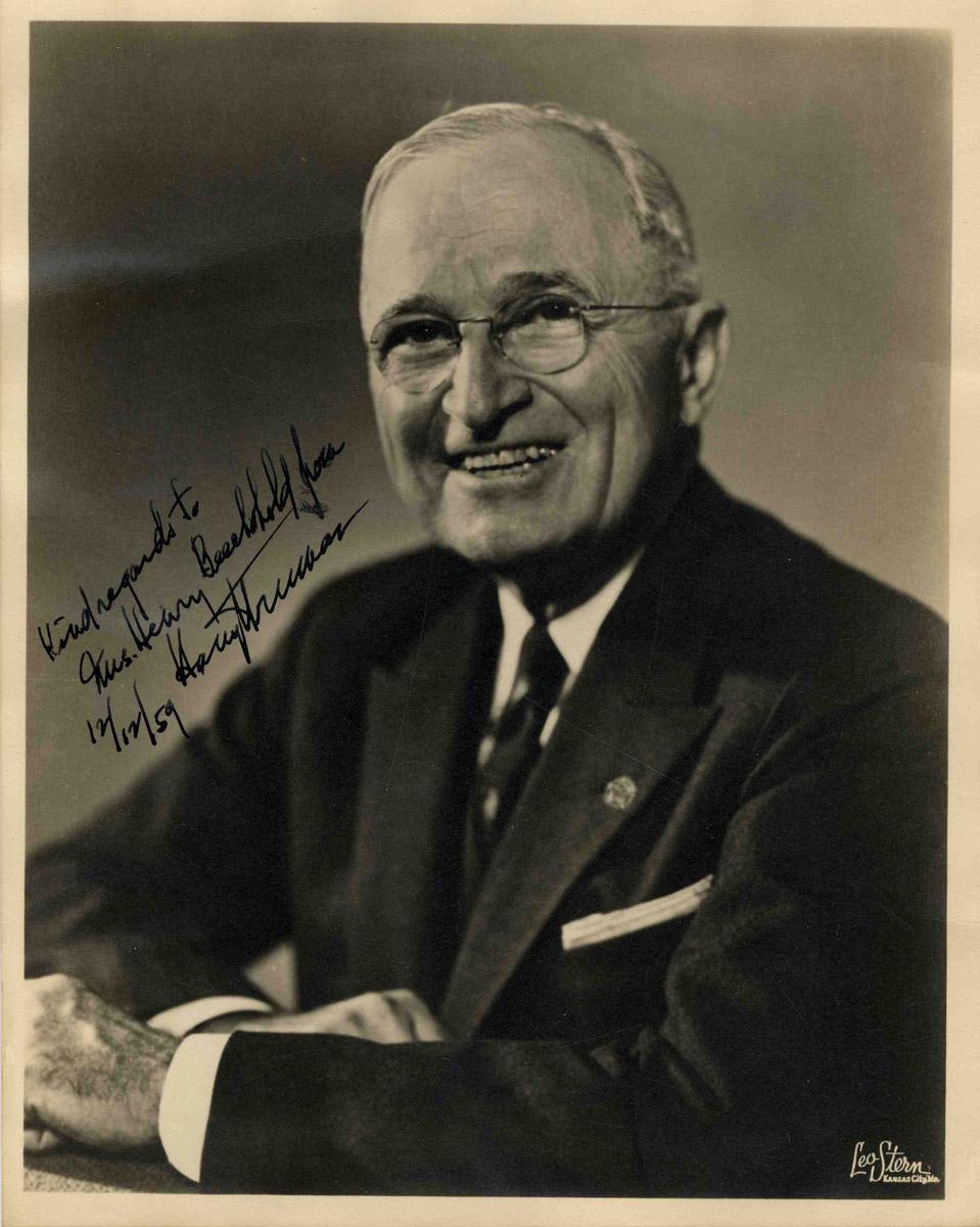 Harry Truman 8'' x 10'' Signed Matte Photo -- ''Kindest Regards to Mrs. Henry Beechhold from Harry Truman 12/12/59'' -- Near Fine