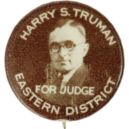 <B>Classic Harry Truman for District Judge 7/8" Button.</B></I> This great 1920s issue is one of the most popular Truman rarities among collectors, and appears less and less frequently on the market in recent years. Choice condition.
