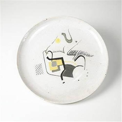Harry Weese<BR>charger<BR>USA, c. 1938<BR>glazed stoneware<BR>15.75"w x 2.5"h<BR>This charger was created by Weese during his time at Cranbrook.<BR>Provenance: Estate of Kitty Baldwin Weese, Chicago<BR><BR><BR><BR><BR>