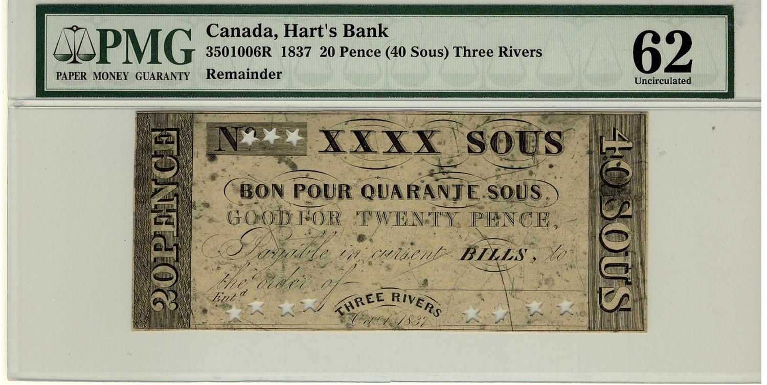 Hart's Bank, 1837 20 Pence, CH-350-10-06R, PMG UNC62.