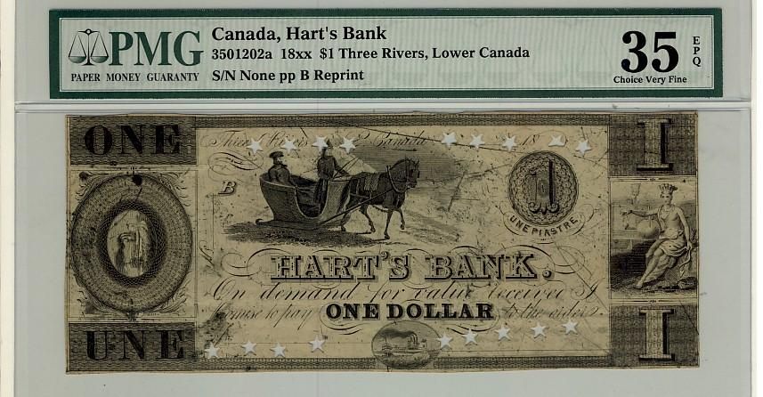 Hart's Bank 18xx $1, CH-350-12-02a, PMG VF35 EPQ. The only example graded by PMG