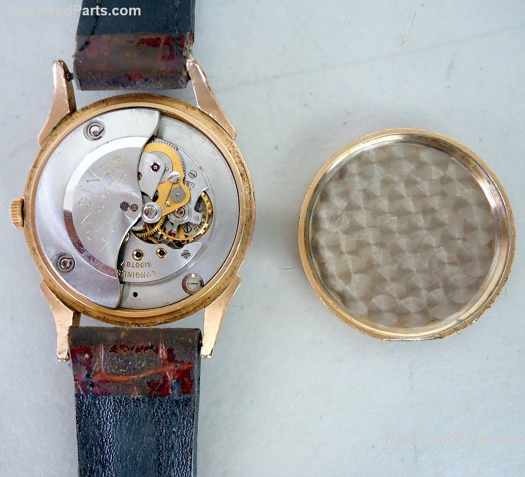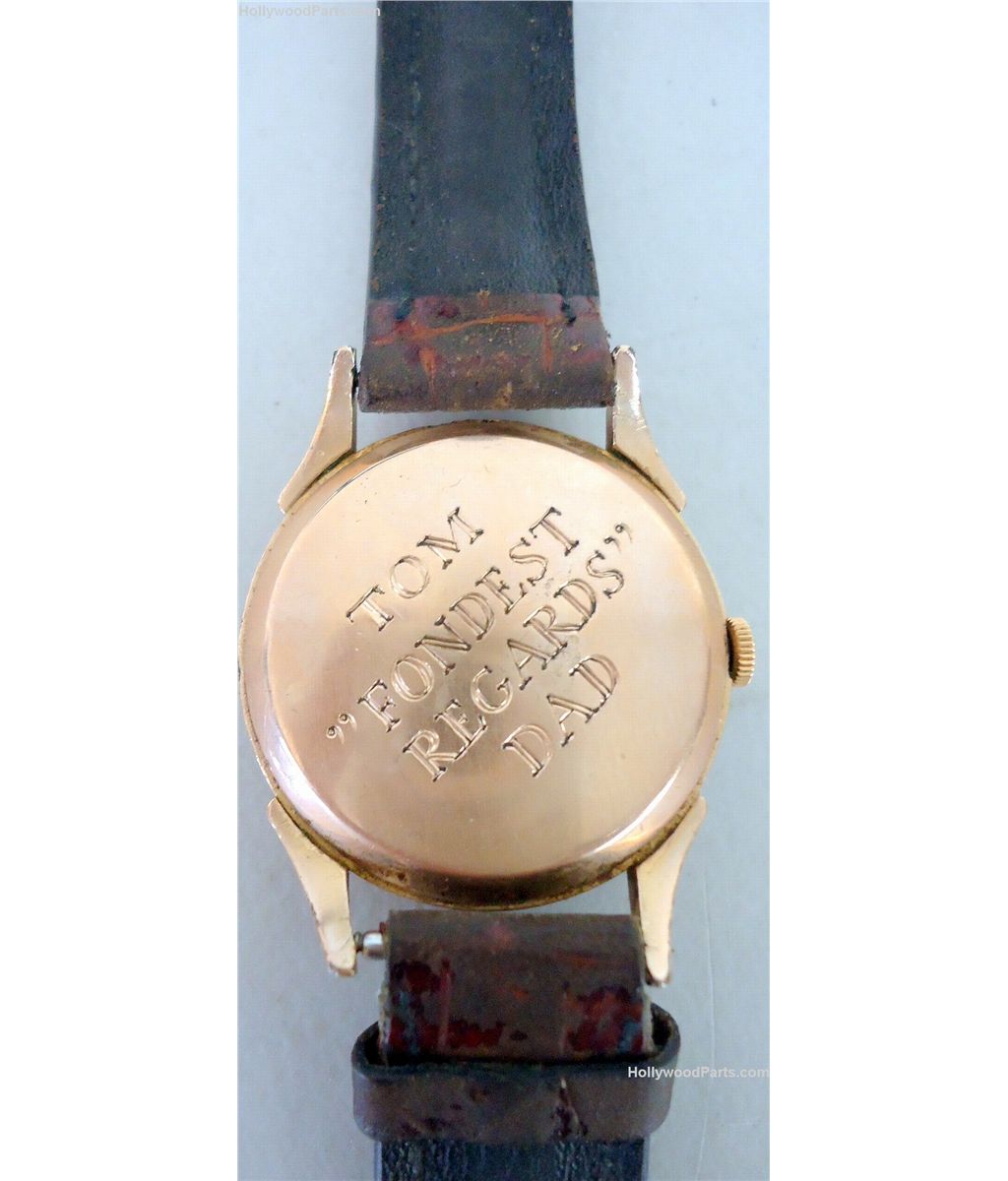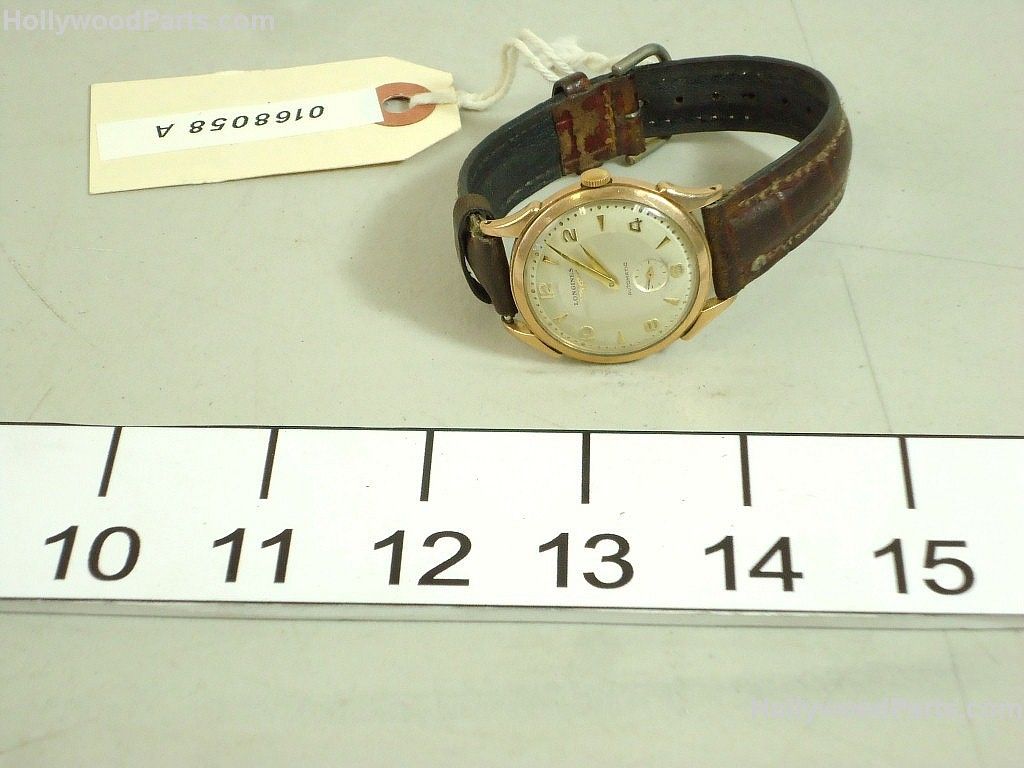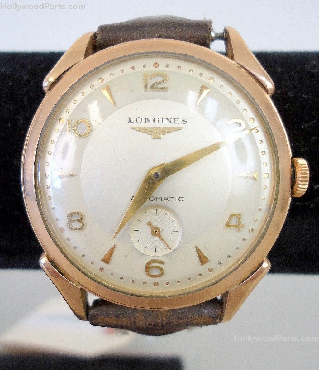 Hero gold round watch with white face made by Longines Automatic. Engraved on back "Tom 'Fondest Regards' Dad" with worn brown leather band. Genuine authentic Longines watch.