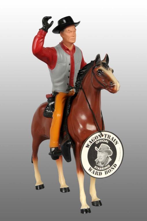 Description Plastic. Includes original string tag. Walking brown horse. Rider is clean but has a few scratches to face. Hat, rope, and gun are present. Horse has minor scratching and wear overall. Condition (Very Good). Size 9".