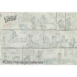 <B>Harvey Eisenberg (attributed) - Yogi Bear Sunday Comic Strip Preliminary Original Art (circa 1963).</B></I> This tightly penciled graphite and blue pencil preliminary drawing reveals the inner workings of how a strip is created. Great portraits of Yogi Bear and Ranger Smith, complete with dialog. The image area is 10.5" x 15", and the art is in Excellent condition.