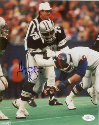 harvey Martin was drafted by the Dallas Cowboys in the third round of the 1973 NFL Draft. His 1977 season was one of the greatest ever by an NFL player. In a 14-game season he totaled 85 tackles and a league-leading 23 sacks, he was named the NFL Defensive Player of the Year, a consensus All-Pro selection, was a key player in the Cowboys winning Super Bowl XII, and a co-MVP of the game with Randy White. Harvey Martin has hand signed this Dallas Cowboys 8x10 Photo. JSA Hologram and Certificate of Authenticity.