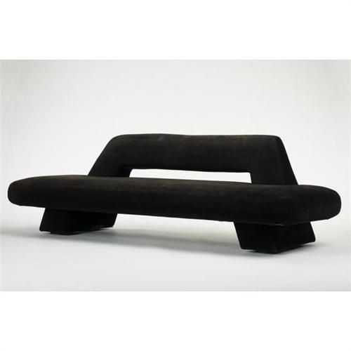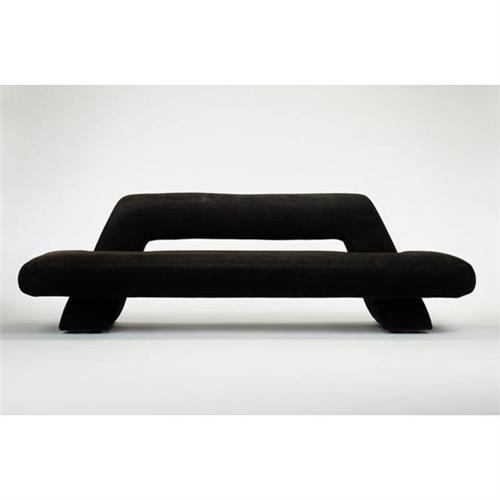 Harvey Probber<BR>Mayan sofa<BR>Harvey Probber, Inc.<BR>USA, 1983<BR>upholstery over wood<BR>90 w x 29 d x 27.5 h inches<BR>Signed with fabric manufacturer's label to underside: [Harvey Probber Falls River Mass.].<BR><BR>Condition of the item is not included in this description. Condition reports are available from Wright upon request. Wright strongly recommends that you review a condition report for each item on which you plan to bid.
