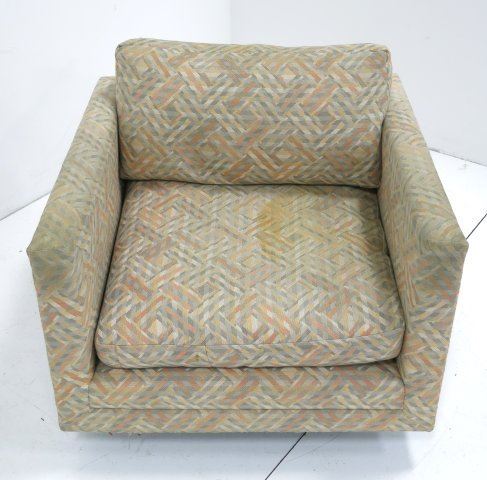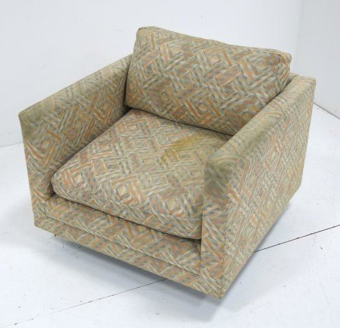 Ca. 1955. Approx. 22.5" H x 29.25" W x 30" D. Stained fabric on 2 fitted cushions.
