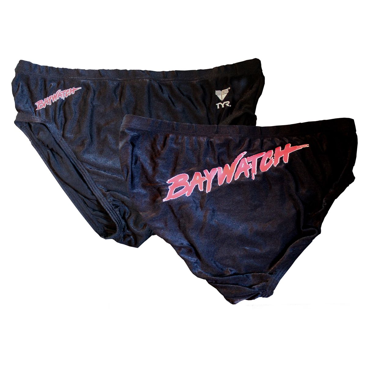 David Hasselhoff swimsuit worn on an episode of the hit TV show ''Baywatch.'' The black nylon and lycra swimsuit features the word ''Baywatch'' on the front and back. Hasselhoff played lifeguard Mitch Buchannon on the long running series about a Los Angeles lifeguard team. Fine condition. With COA from ''Baywatch'' set costumer Patty Mayfield.