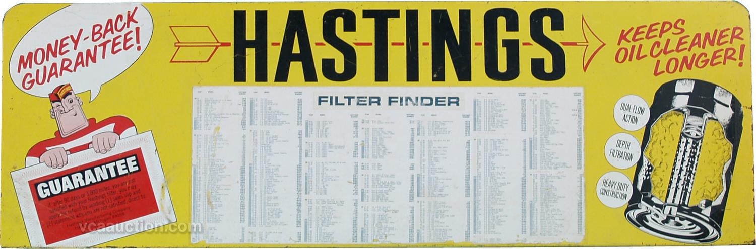 Hastings "Filter Finder" Auto Store Flange Tin Sign - 36" x 12"