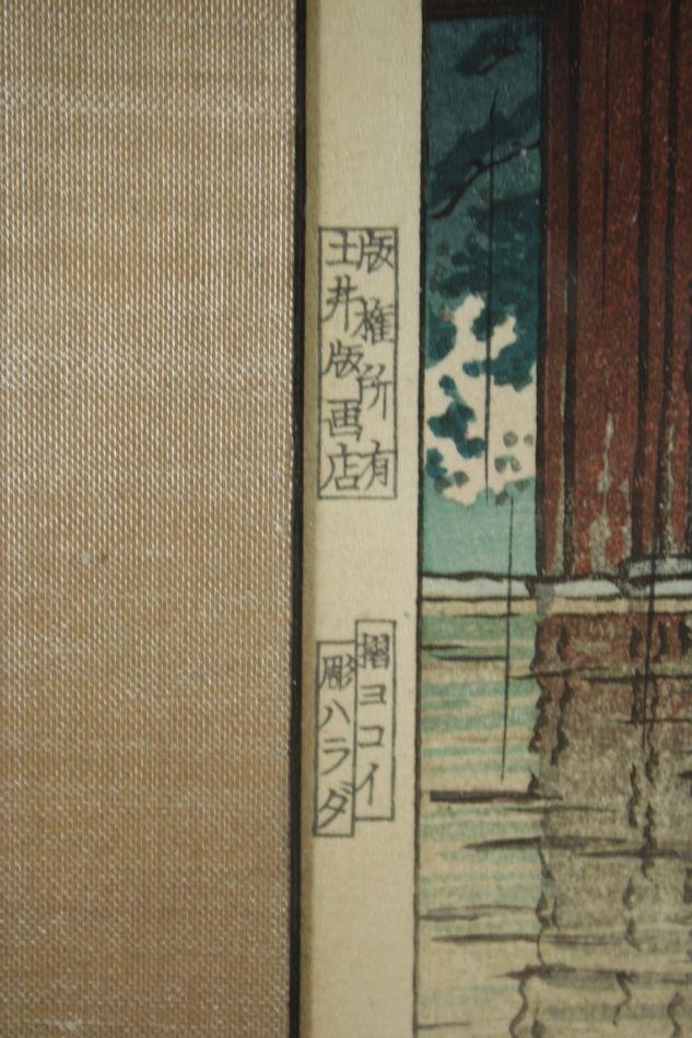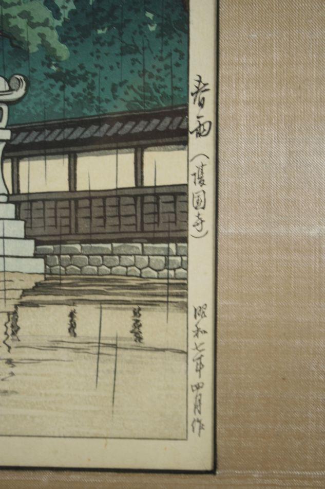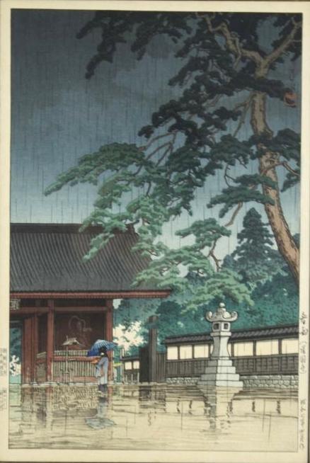 Hasui Kawase (Japanese, 1883-1957) Harusame, Gokokuji/ Spring Rain, Gokoku Temple, Woodblock Print.
