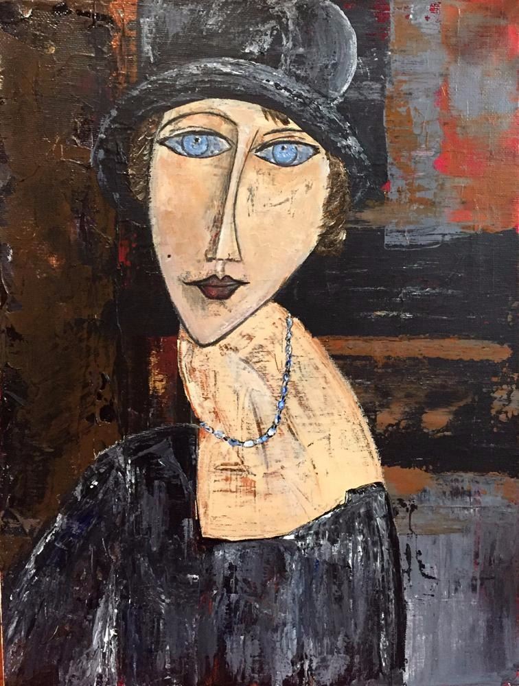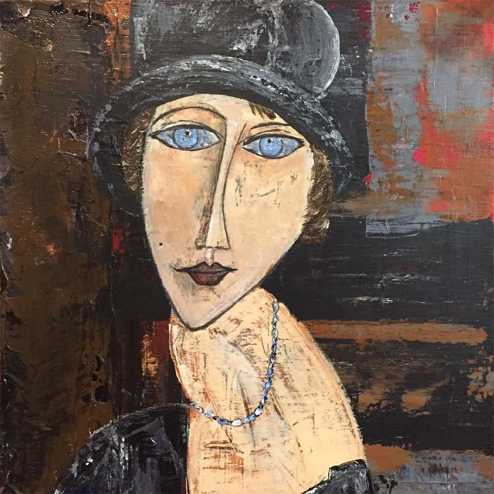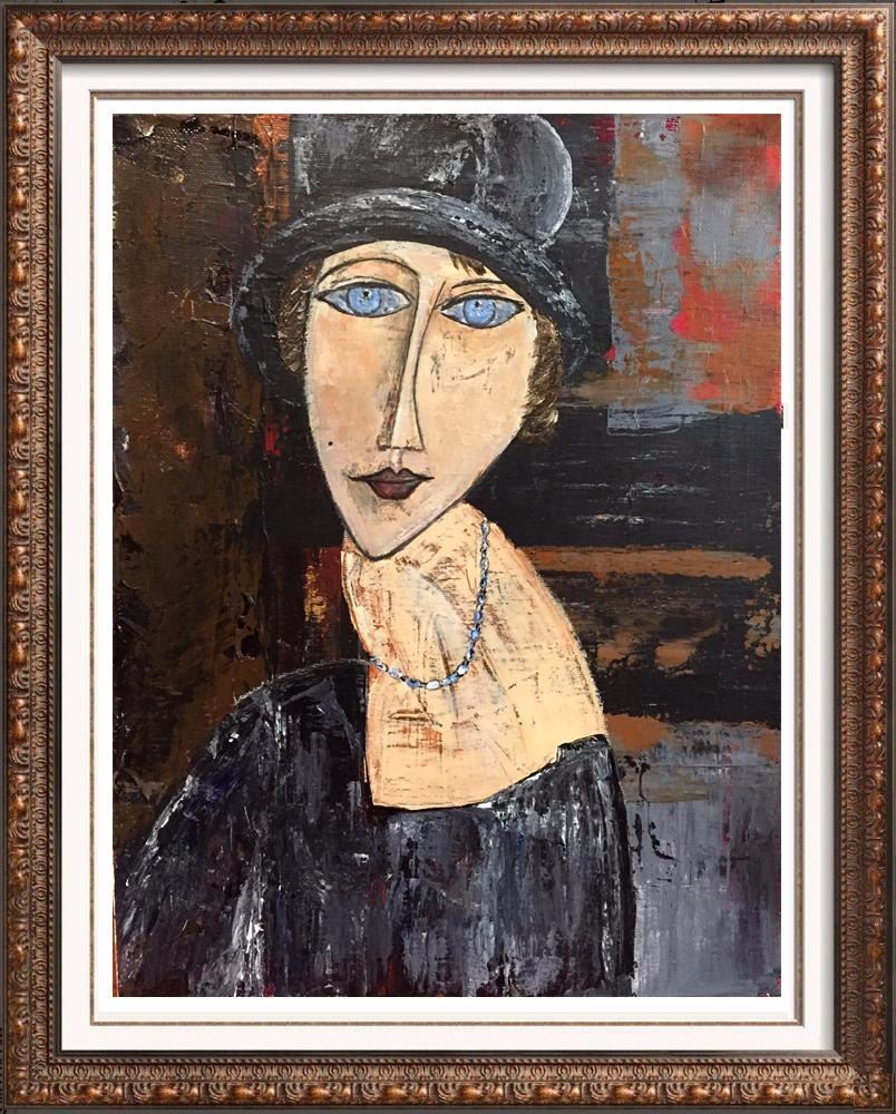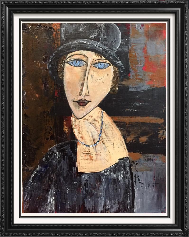 Janier | Title of Art: Hat & Necklace | Medium: Hand Signed Original Acrylic on Canvas | Edition #: Original | Unframed Size: 16 x 12 | Framed Size: Offered Stretched. Framing presentation if shown is for concept only. If you need assistance with custom framing, call the experts at ArtForSale