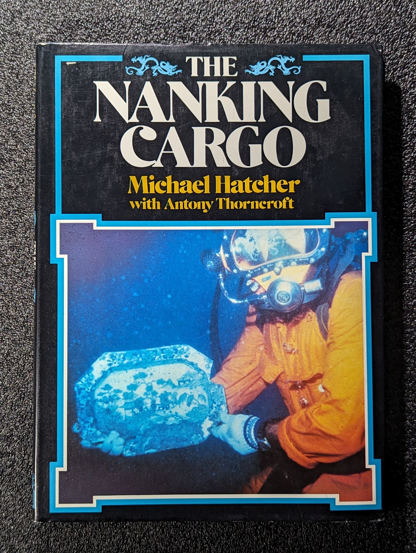 Hatcher, Michael & Antony Thorncroft. THE NANKING CARGO. Hamish Hamilton, London. 1987. 4to. 176 pages. Original blue cloth, gilt, jacket. b&w and color historical and antiquities photos throughout. English text. Jacket/Book Fine. This book is the story of the search for, and salvage of, the 'Geldermalsen', a Dutch East Indiaman that sank in 1752 off the coast of Singapore (also known as the Nanking Cargo wreck). The wreck was salvaged by Michael Hatcher in 1985 and yielded an astounding cargo of Chinese porcelain and much gold. Lot weight: 1 lbs 10oz. Subject(s): Sunken Treasure.
