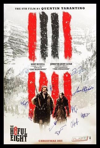Signed by Samuel L. Jackson, Kurt Russell, Jennifer Jason Leigh, Tim Roth, Demian Bichir, Walton Goggins, Micheal Madsen, Bruce Dem, Channing Tatum, Zoe Bell, and director Quentin TarantinoHigh gloss stock paper in wood framing.This item comes with a Certificate of Authenticity from a third party authenticator. This Certification of Authenticity does not imply that the item will be certified by any other rival authentication companies. The accompanied certification is the only certification the auction company can confirm. These items are being sold as collectable pieces and there is no guarantee that this item can be resold on any online marketplace. Each of these companies has their own policies and politics.