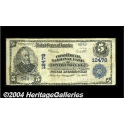 Hattiesburg, MS - $5 1902 Plain Back Fr. 609 The Commercial NB Ch. # 12478A scarcer Hattiesburg bank with just five large examples recorded in the Kelly census. Fine-Very Fine, with a small rust mark which is difficult to see without close inspection. <BR><BR><B>Important notice:</B> Heritage usually auctions material at the rate of 200-250 lots per hour. On some occasions eBay Live bid software or the Internet may not be able to keep up with the pace of the auction. We recommend placing a realistic absentee bid now as insurance to avoid disappointment. Occasionally the auctioneer may eliminate or reject an eBay Live bid, and the auctioneer may also reopen a lot after the close of the eBay live bidding (usually because we missed an audience bid), and may reject your bid even if it shows you as the winning bidder. By bidding via eBay Live, you agree that Heritage may award the lot to another bidder at its sole discretion under the circumstances described above or any other reasonable circumstances. Since eBay bids are not shown to us until we open the lot on the floor, we treat those bids just like floor bids. In most cases the floor responds before the eBay bid is presented to us, due to Internet lag time, so for consistency we have made it a policy that floor bids are always considered first over tie eBay live bids. Also please note that all Heritage lots purchased through eBay Live carry a 20% Buyer's Premium. Please make sure you read the Terms and Conditions before you bid. <BR><BR><B>IMPORTANT ANNOUNCEMENT ABOUT RESERVES:</B> Heritage now divulges all reserves on its web site 7 days before every auction. If you want to know whether the reserve on this lot has been met, and if not, what the reserve amount is, please visit this lot page on the HeritageCoin.com web site, or email: bid@HeritageGalleries.com