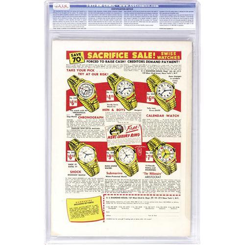 48C. COMICS – Comic books sold referencing a third-party grading service are sold "as is" without any express or implied warranty. Certain warranties may be available from the grading services and the Bidder is referred to them for further details: Comics Guaranty Corporation (CGC), P.O. Box 4738, Sarasota, FL 34230. Subject to sections 57 and 58, bidders who intend to challenge authenticity or provenance of a lot must notify Auctioneer in writing within thirty (30) days of the Auction's conclusion. Auctioneer's maximum liability shall not exceed the high bid on that lot, which bid shall be deemed for all purposes the value of the lot. In the event Auctioneer cannot deliver the lot or subsequently it is established that the lot lacks title, provenance, authenticity, or other transfer or condition issue is claimed, Auctioneer's liability shall be limited to recission of sale and refund of purchase price. After one year has elapsed, Auctioneer's maximum liability shall be limited to any commissions and fees Auctioneer earned on that lot.