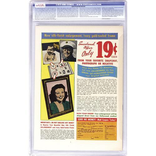 50. Since we cannot examine encapsulated notes or comics, they are sold "as is" without our grading opinion, and may not be returned for any reason. Auctioneer shall not be liable for any patent or latent defect or controversy pertaining to or arising from any encapsulated collectible. In any such instance, purchaser's remedy, if any, shall be solely against the service certifying the collectible.